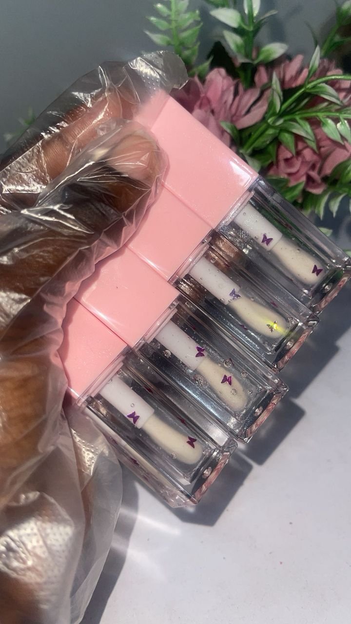 Our Clear Lipgloss, a delightful fusion of beauty and sensory pleasure. Not only does this lipgloss enhance your natural lip color with its shine, but it also features a captivating array of pretty decals that dance within the tube, making it a perfect accessory for any beauty enthusiast and smeels heavenly.